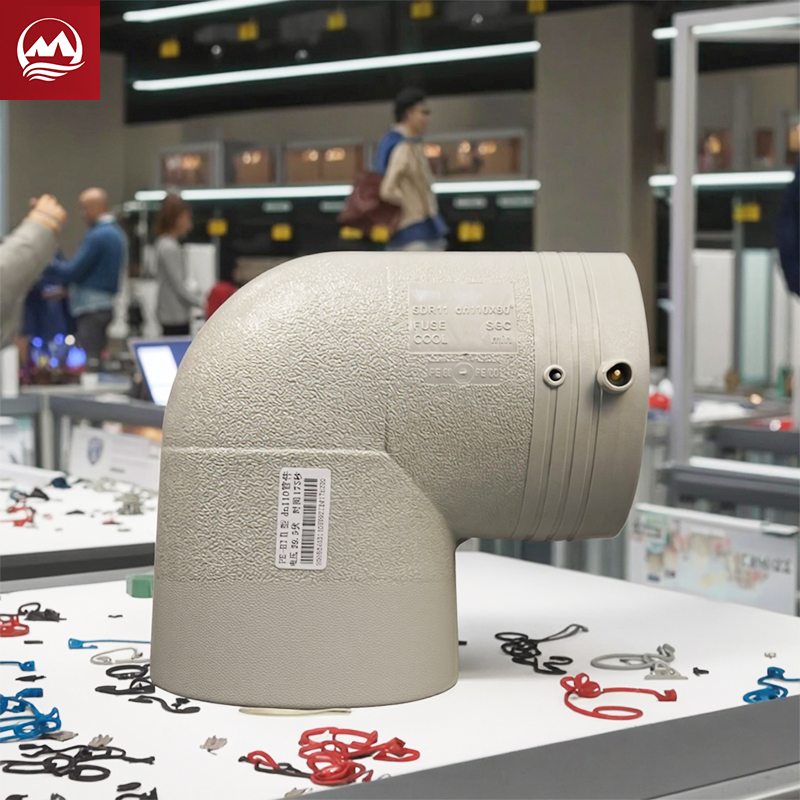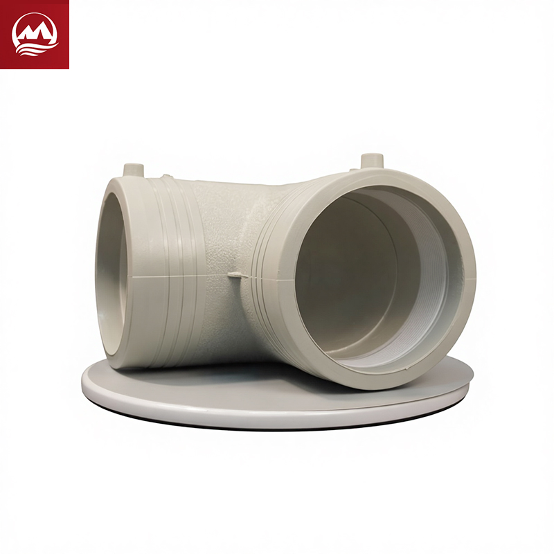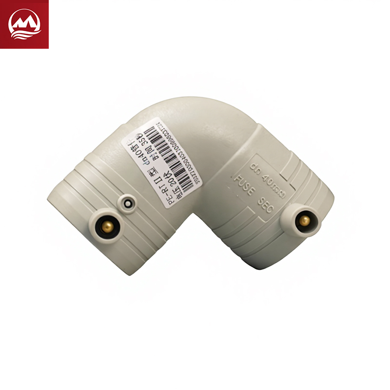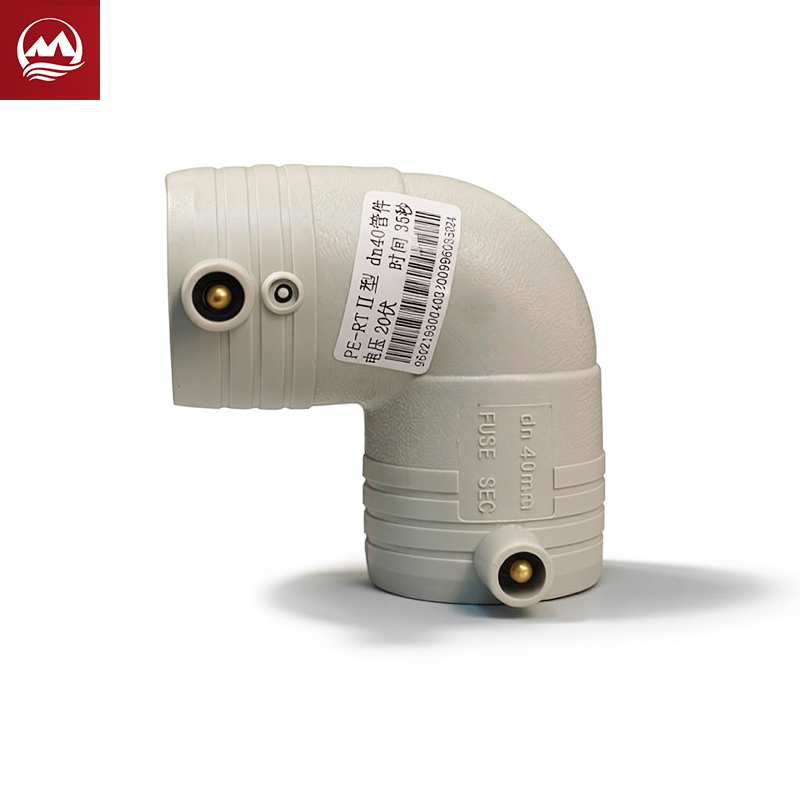 电熔 90 度弯头专为在聚乙烯管道系统中实现精确的九十度方向转角而设计。在复杂的管道布局中,该弯头是绕过障碍物、改变管线方向或连接垂直设备接口的理想选择。该弯头通过高精度注塑成型,确保了转角角度的精确性以及壁厚的均匀性,从而有效降低了流体在转角处的压力损失和管道内部的应力集中。弯头两端的电熔区域配备了高性能加热丝,保证了在转角这一高应力点能够形成坚固、持久且防泄漏的连接。相比于现场热熔弯制,电熔弯头提供了更高的连接质量和可控性,避免了可能影响流体通道的内部焊瘤。在需要严格控制路径和高可靠性转角的关键应用中,这款弯头是不可或缺的。