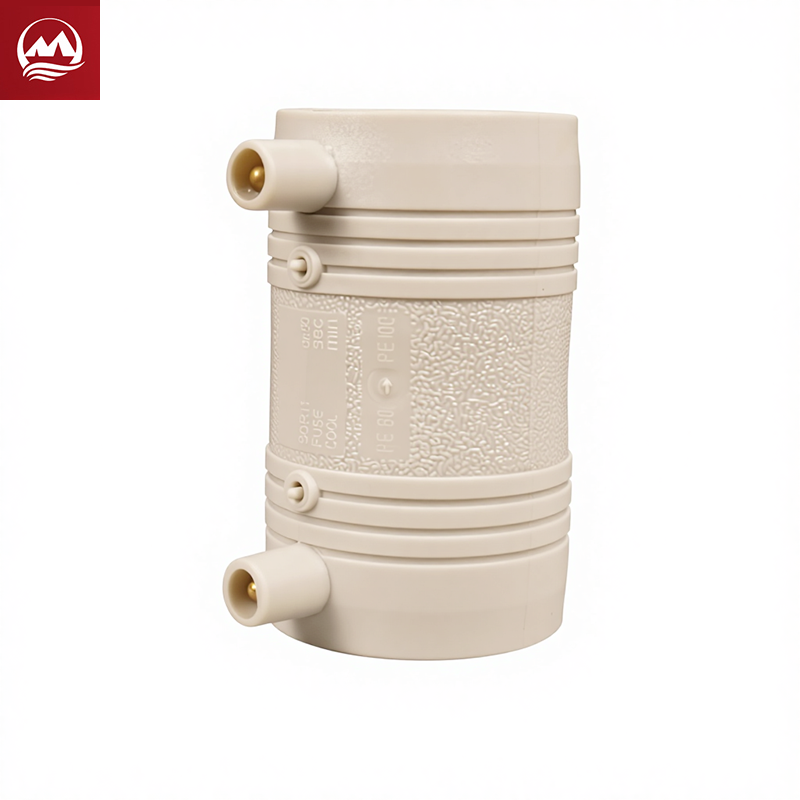 电熔直接是聚乙烯(PE)管道系统中实现直线连接的核心组件。它专门用于连接两条相同外径的 PE 管道,确保管线的连续性和高强度。该直通件采用高性能的 PE100 原生材料制造,具备很好的耐压性能和长期的抗裂纹增长能力,能够与管道本体实现同寿命运行。内部精密嵌入的电阻加热丝,通过标准的 40V 电熔焊机激活后,能均匀熔化接头和管道表面,形成一个分子级的均质熔接区域。这种电熔技术连接具有极高的气密性和防泄漏能力,是高压燃气和市政供水管网的一选。